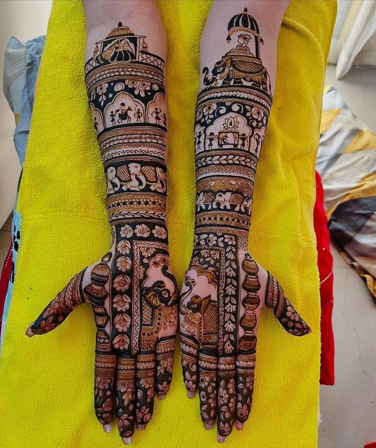 Yes, Rajasthani mehndi is one of the most preferred bridal styles due to its rich detailing, auspicious symbols, and timeless elegance.