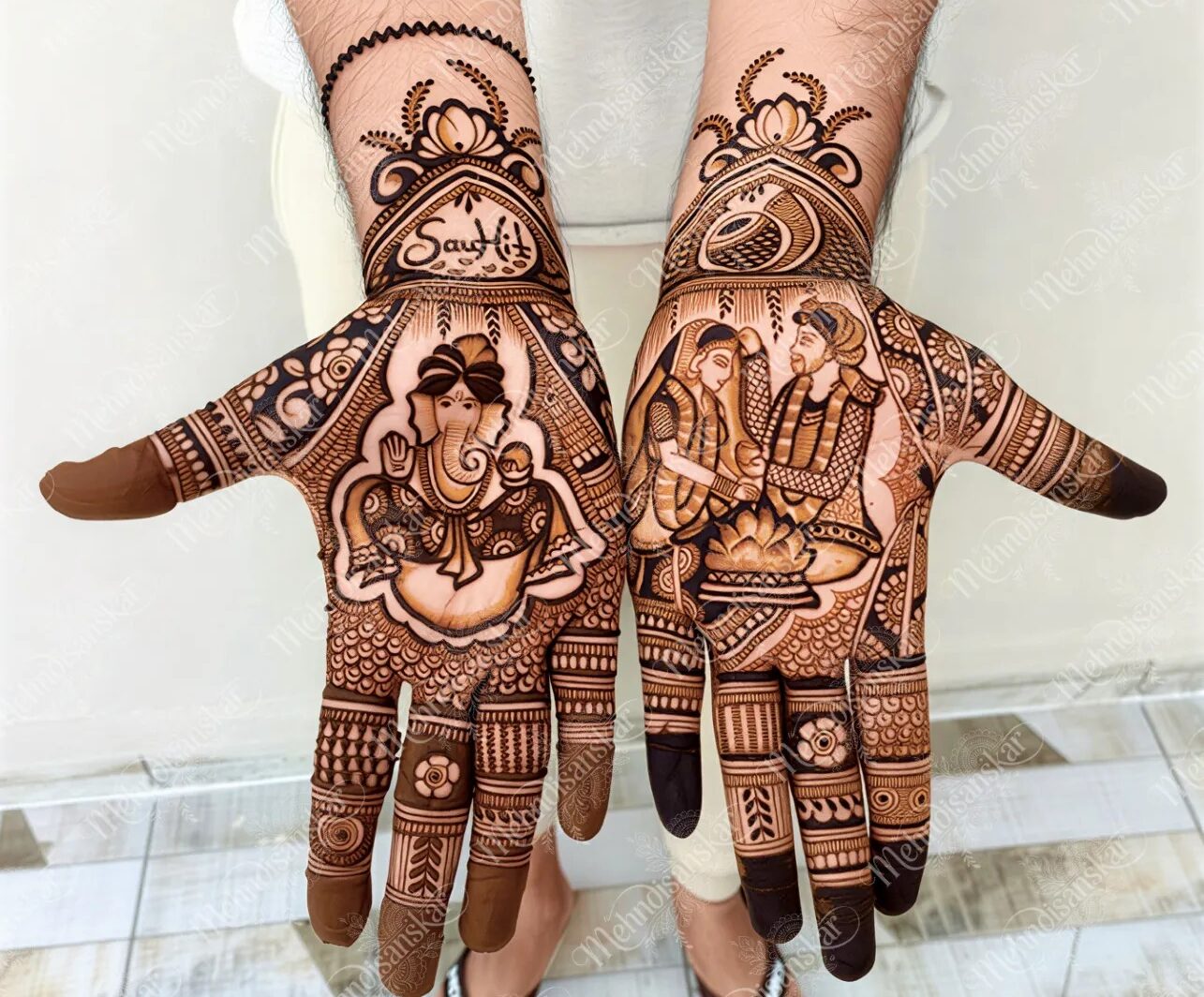 At Mehndi Sanskar, we specialize in creating sophisticated groom mehndi designs that blend tradition with contemporary style. Our experienced artists understand that grooms deserve mehndi as special as brides-crafting masculine patterns that range from subtle minimalist designs to bold Arabic motifs. With over 3+ years of expertise, we've perfected the art of groom henna, using premium organic ingredients to ensure rich color and comfortable application. Whether you prefer simple palm patterns, intricate full-hand coverage, or personalized designs with hidden elements, we deliver exceptional artistry tailored to your wedding vision. Trust Mehndi Sanskar to make your special day unforgettable with mehndi that complements your style and celebrates your journey.