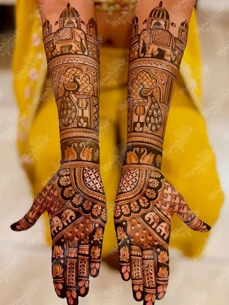Yes, Rajasthani mehndi is one of the most preferred bridal styles due to its rich detailing, auspicious symbols, and timeless elegance.